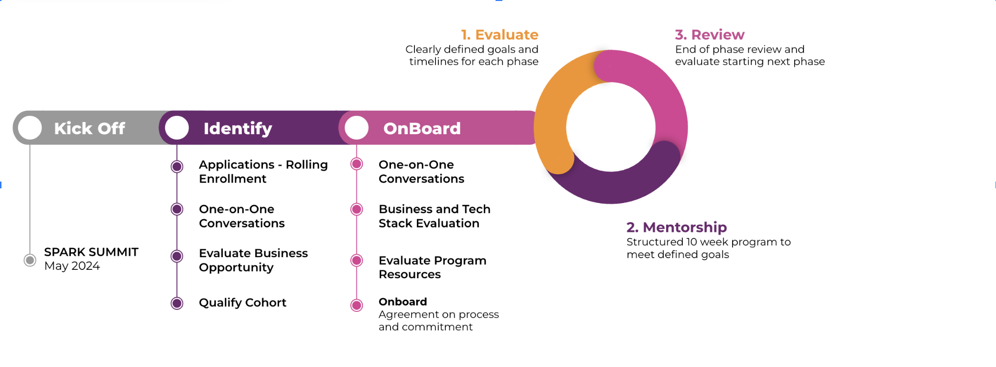 Our program operates on a rolling enrollment basis, following a structured process across all three phases.